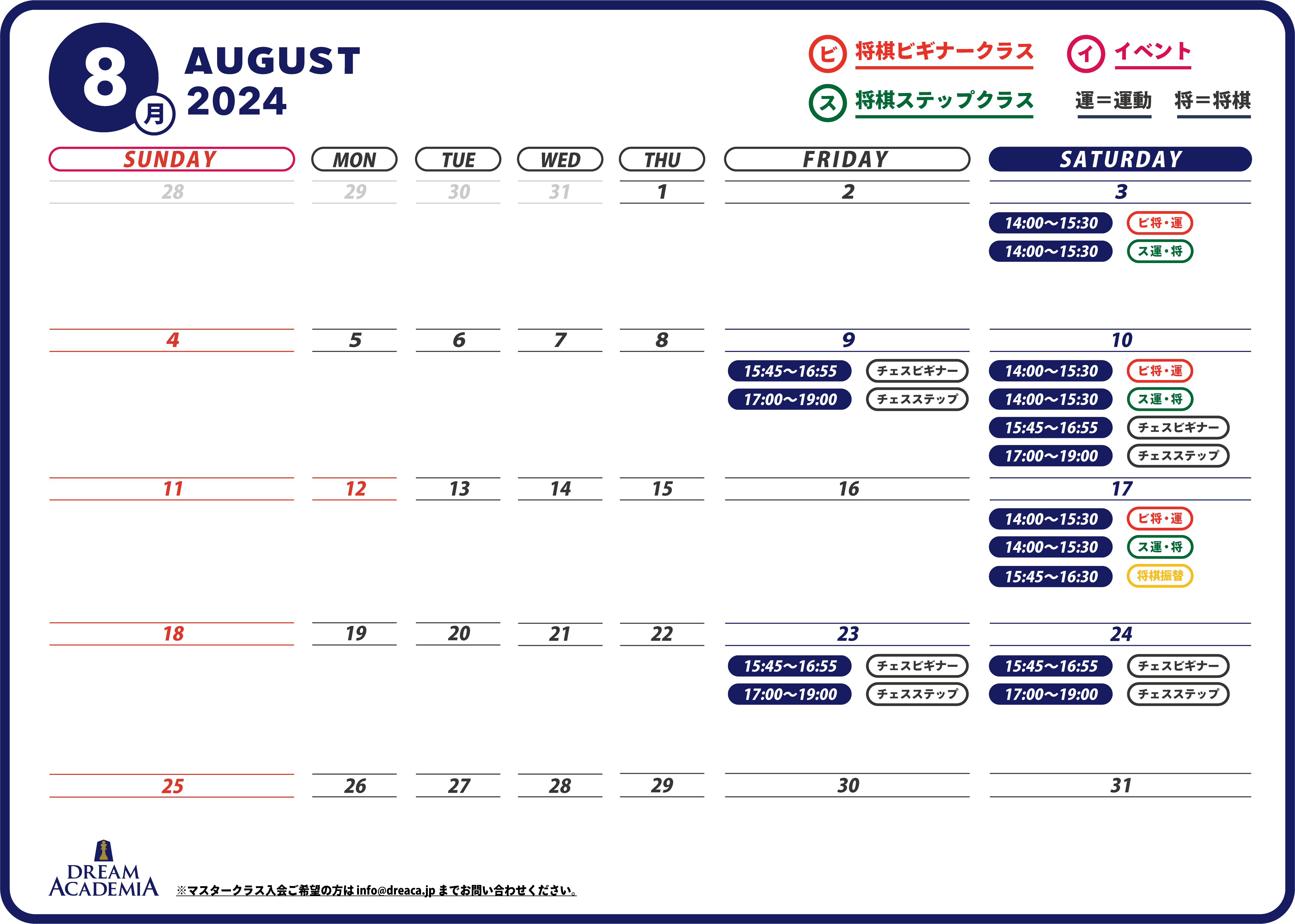 ドリームアカデミアの2024年8月スケジュールになります。
