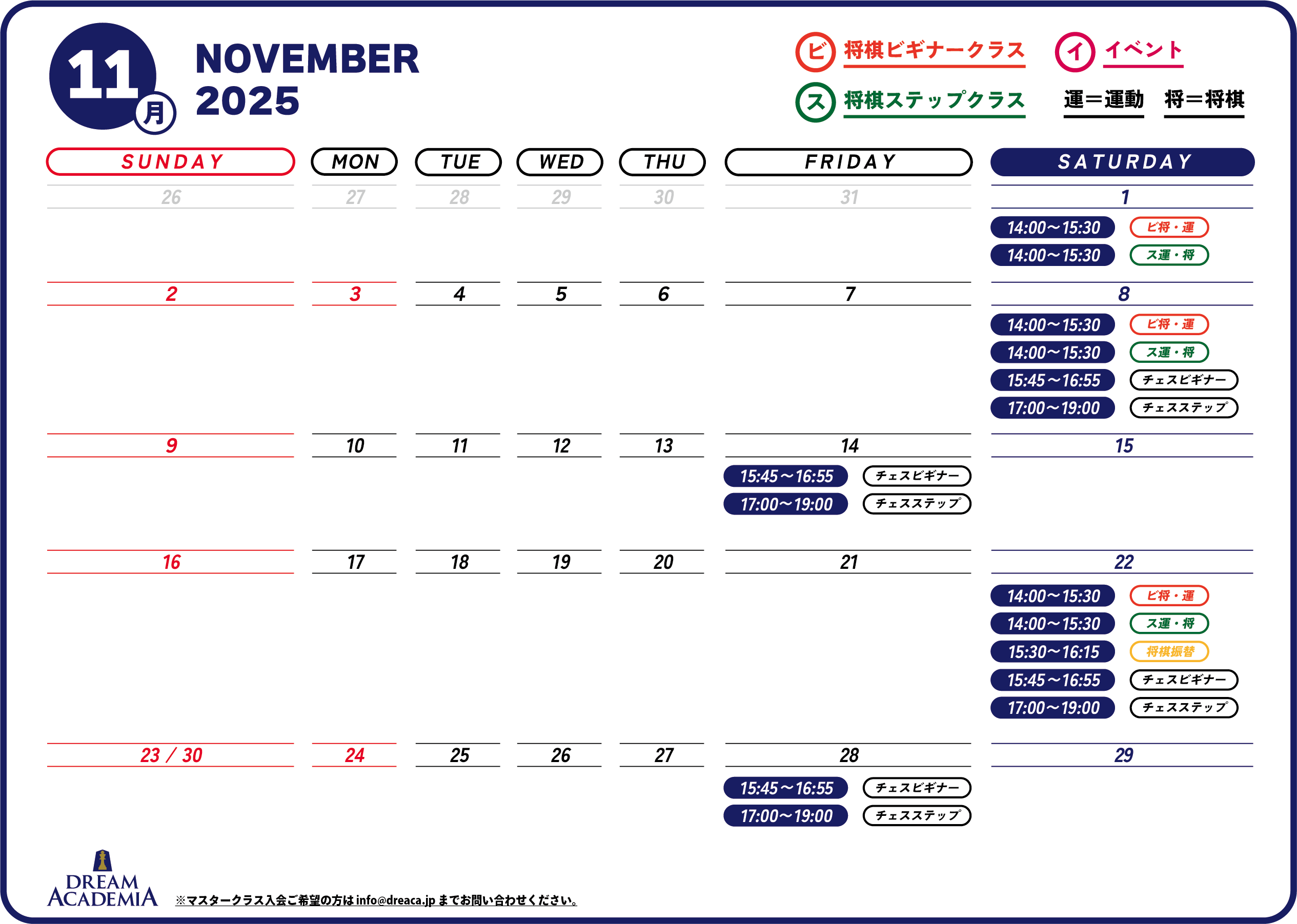 ドリームアカデミアの2025年11月スケジュールになります。