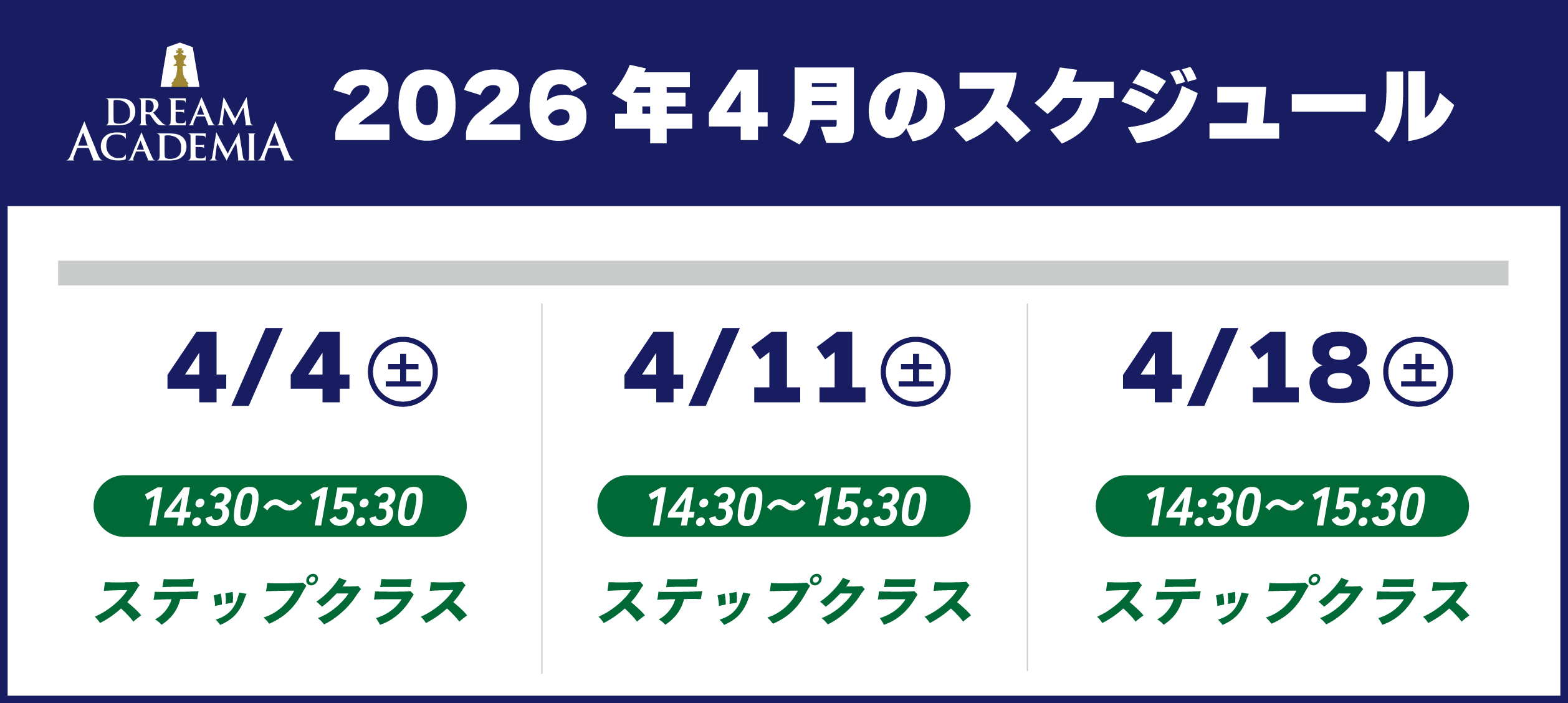 ドリームアカデミアの2026年4月スケジュールになります。